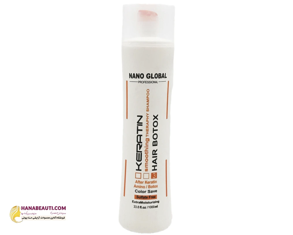 شامپو کراتینه و بوتاکس نانو گلوبال Nano Global سفید فاقد سولفات و تثبیت کننده حجم 1000 میلی لیتر سفید