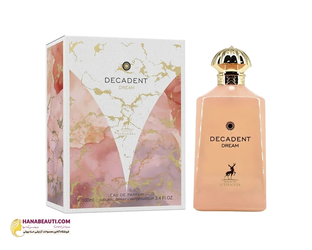 ادوپرفیوم زنانه الحمبرا مدل دکادنت دریم با رایحه شیرین، گرم و جذاب، مناسب مهمانی و استفاده روزانه. ماندگاری بالا، حجم 100 میل، خرید آسان و تضمین اصالت از حناگالری