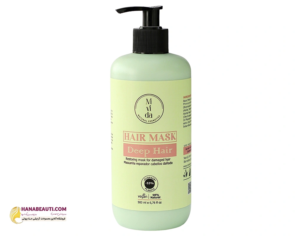 کرم مو (ماسک مو) بازسازی کننده دیپ هیر Mivida حجم ۵۰۰ میلیلیتر سبز