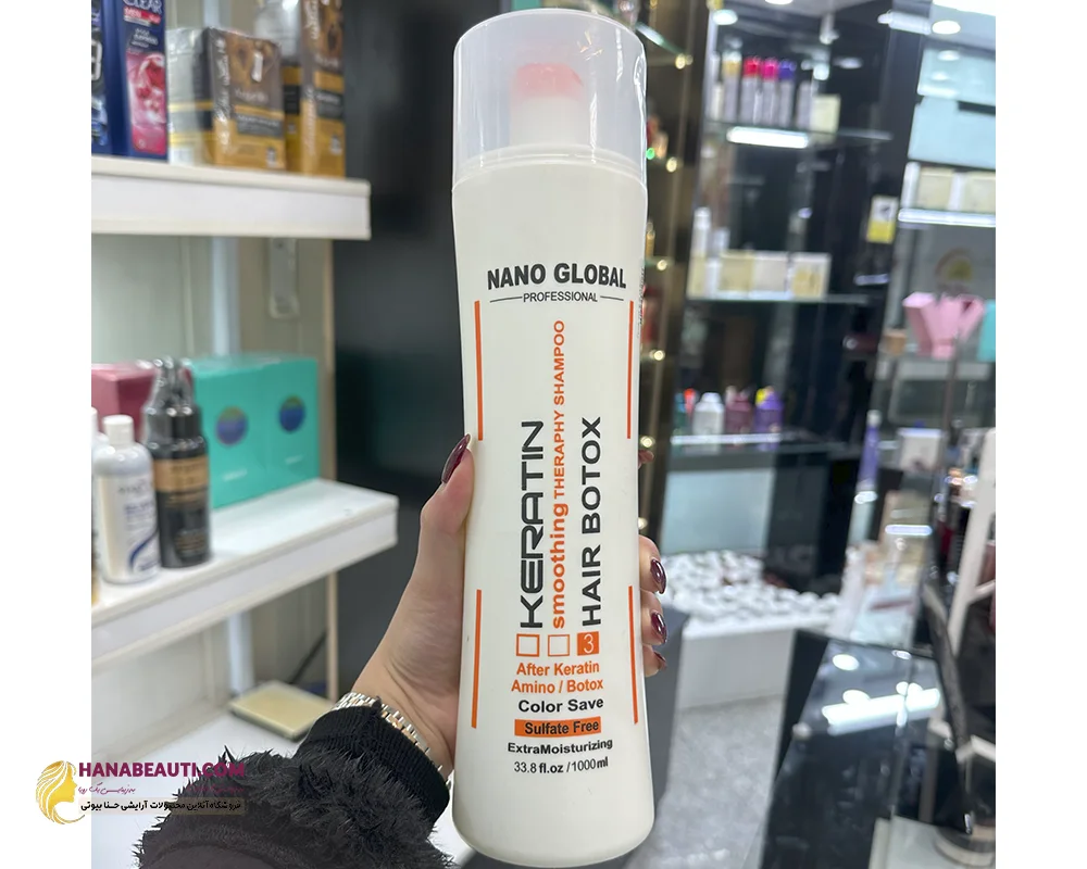 شامپو کراتینه و بوتاکس نانو گلوبال Nano Global سفید فاقد سولفات و تثبیت کننده حجم 1000 میلی لیتر سفید